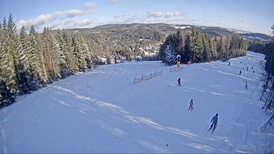 Výhledy, sníh, sluníčko, modrá Family a lyžařská škola. Ke 30 až 40 cm technického sněhu přibylo asi 20 cm přírodního. Vše funguje, půjčovna, servis, bufety - však to znáte. A jestli se k nám chystá...